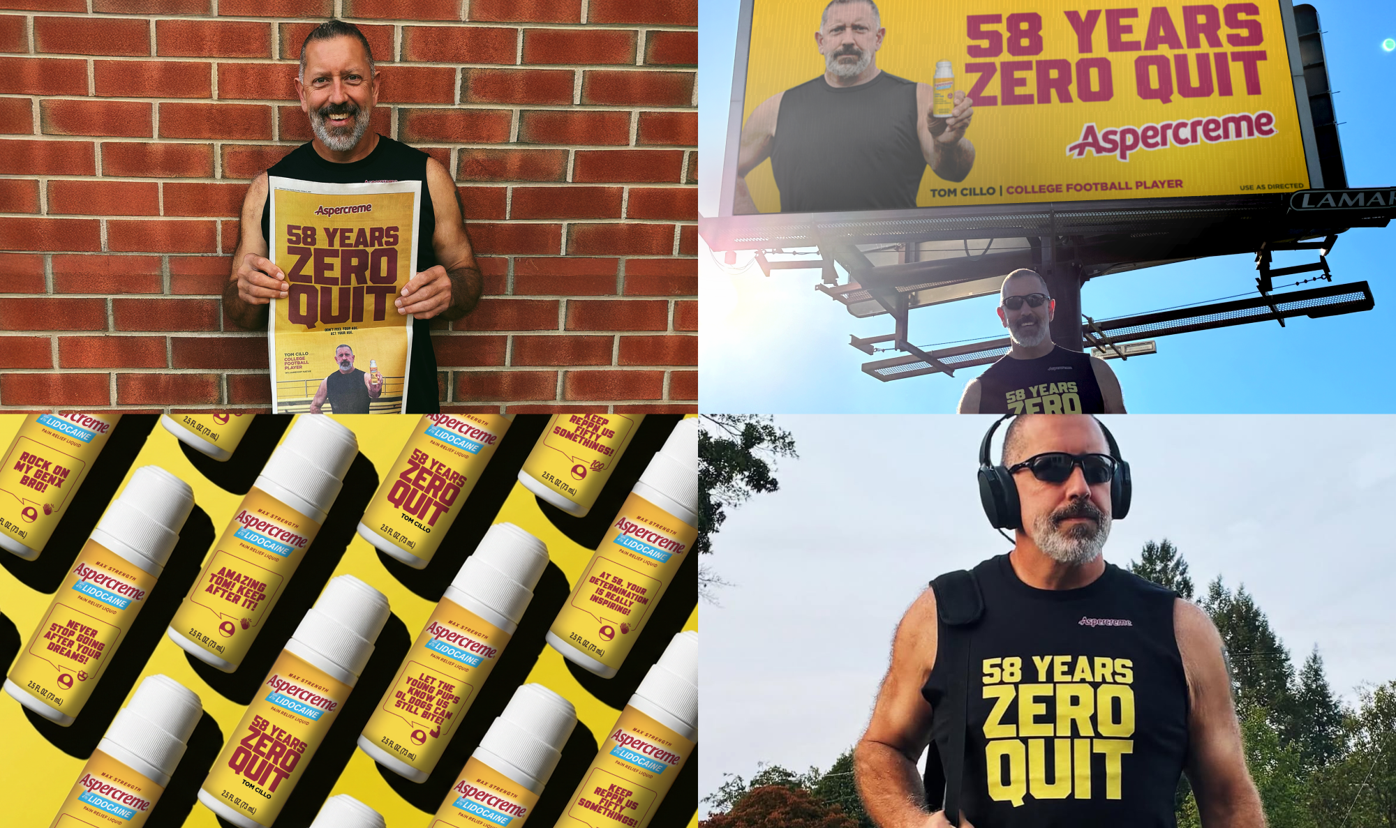 This is exclusively the case in American college football, an enormous $14 billion industry built around the best 18 to 22-year-old players in the country. Aspercreme — the #7 pain reliever in the category, targeting an audience of 55+ year-olds — would be the last brand you’d expect to jump into this college football frenzy. Enter, the perfect partner: 58-year-old college freshman Tom Cillo.